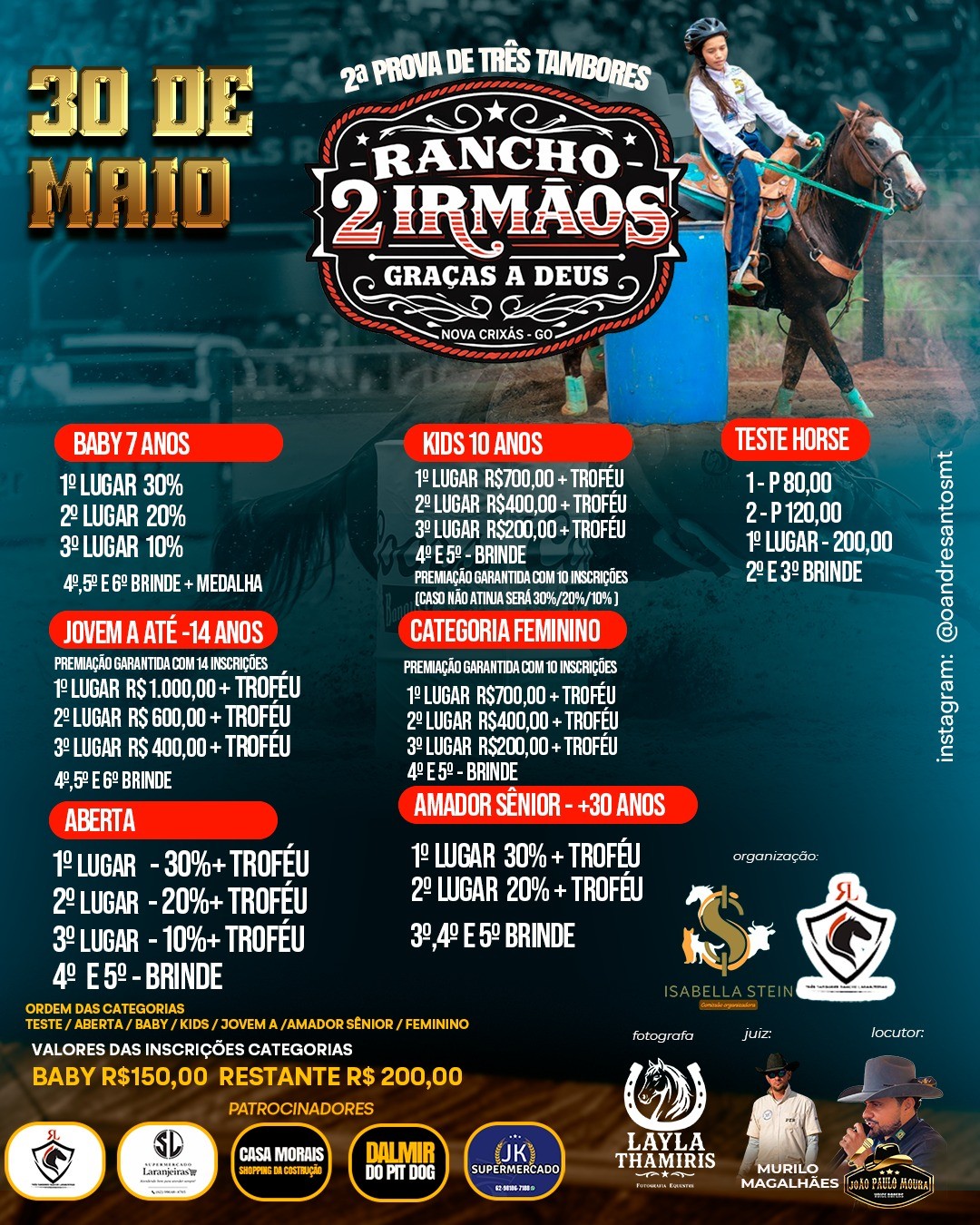 Prova Três Tambores Exponova 2026 - 30 de Abril a 02 de Maio de 2026 - Pq. de Exposições - Nova Xavantina, MT