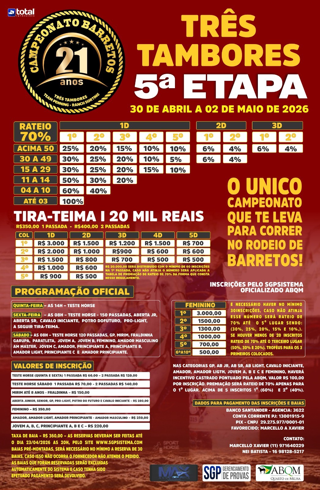 5ª Etapa 21º Campeonato de Barretos 2025/2026 - 30 de Abril a 02 de Maio de 2026 - Parque do Peão - Barretos, SP